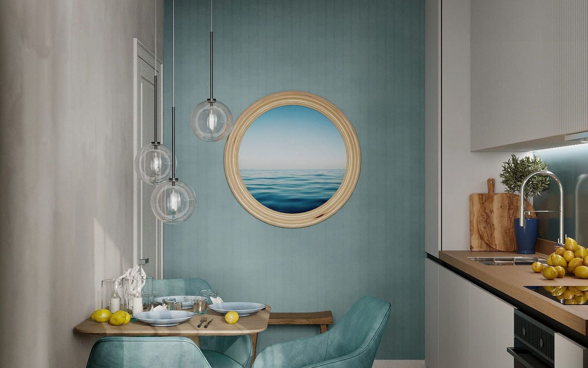 47,5 м2Современная планировка с кухней-столовой. Панорамные окна и потрясающий вид на море и горы.Панорамный вид на море