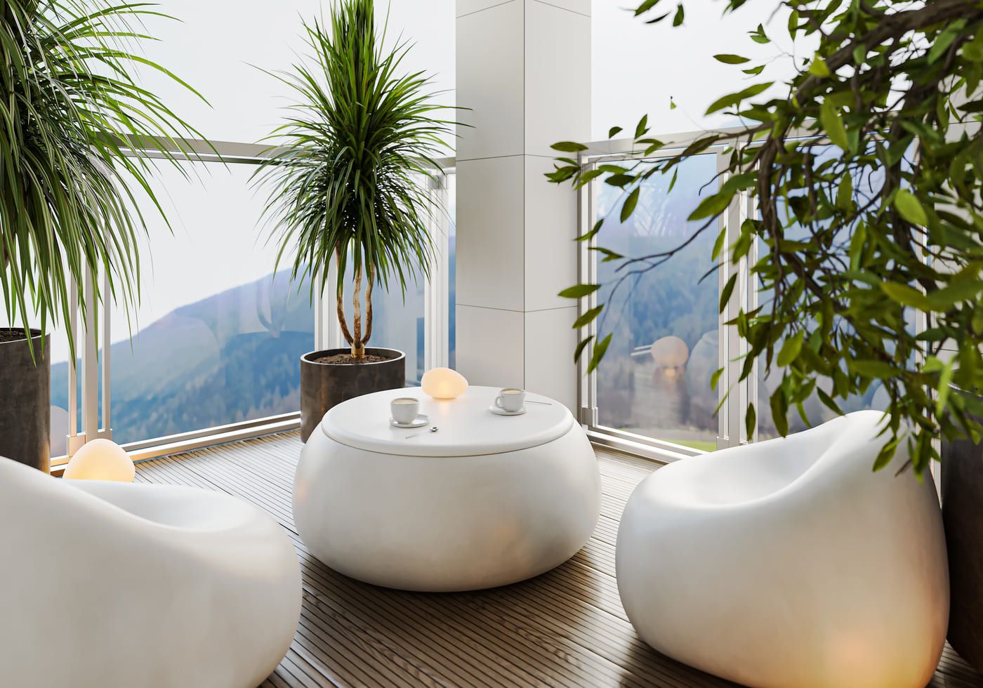 Современная планировка с кухней-столовой. Панорамные окна и потрясающий вид на море и горы.