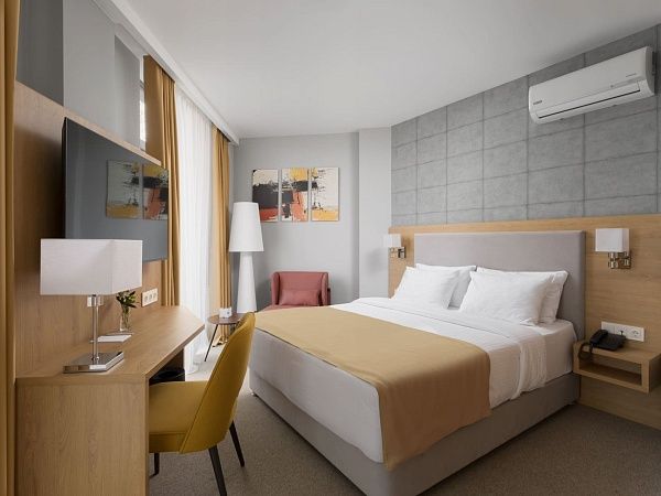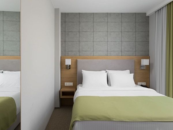 26 м2Стандартный номер повышенной комфортности площадью 26 кв.м. для комфортного размещения двух-трех человек. -